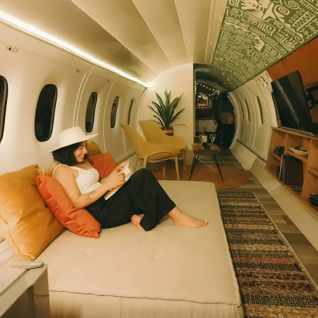 Disfruta de todas las comodidades modernas en un auténtico avión transformado. Desde una cómoda habitación en la cola del avión hasta un baño al aire libre, cada rincón está diseñado para que tu estancia sea inolvidable.